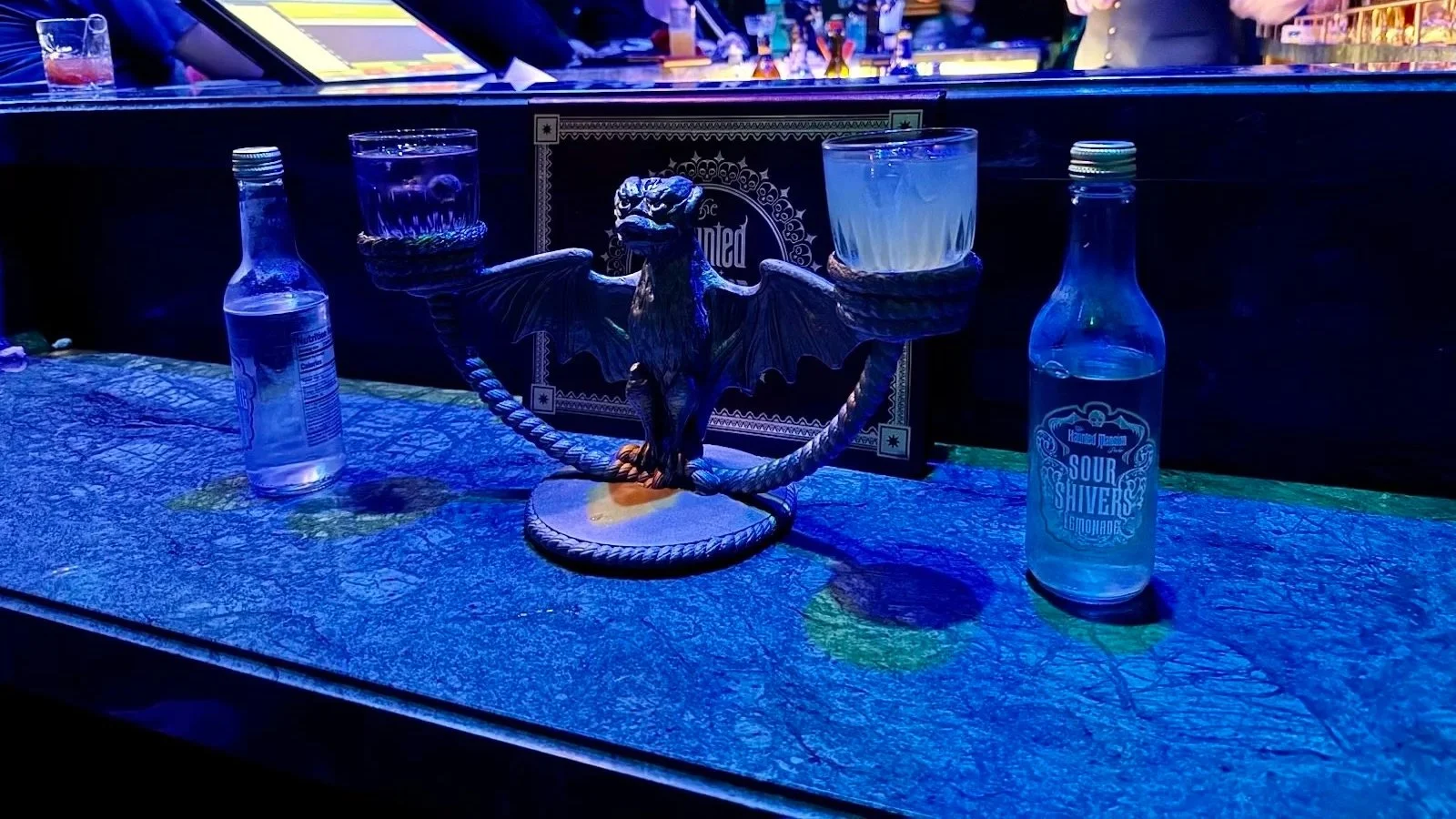 Haunted Mansion Parlor: The Haunted Mansion Parlor runs on a 30-minute narrative loop, and the detail involved rewards sitting through it more than once. Moving busts, spectral music, ghostly cocktails served in ride-themed mugs. Stay long enough and you will watch the aquarium fill with ghost fish and catch Madame Leota materializing in the mirror behind the bar. The wallpaper and carpet patterns are lifted directly from the attraction. For anyone who grew up with the parks, the nostalgia here is specific and well-earned.