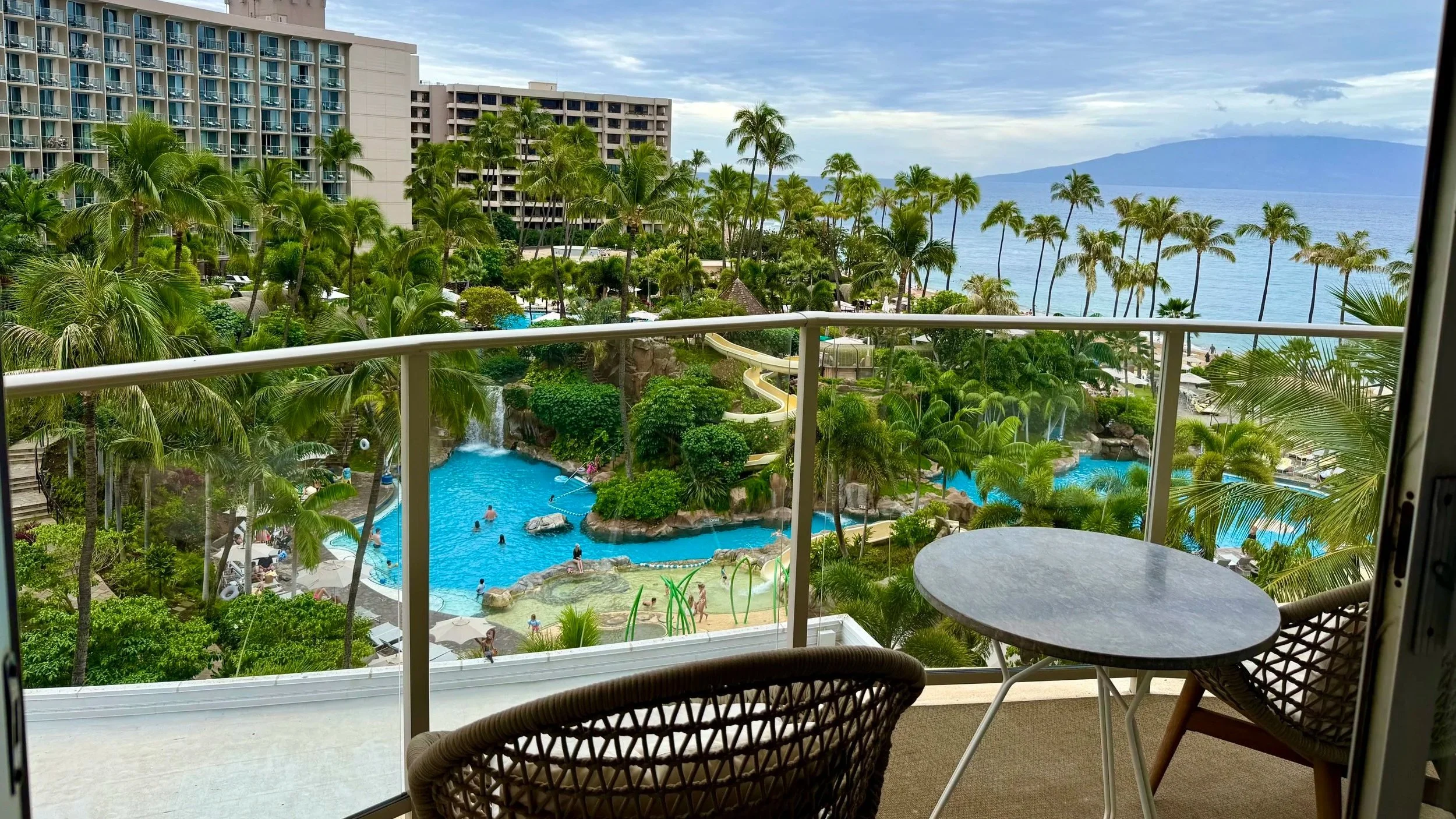 Grand Wailea, A Waldorf Astoria Resort "Grand" is the only word for it. The grounds are lush, tropical, and massive. It feels like a tropical theme park in the best way. The lobby is filled with Botero sculptures and the gardens are impeccable.